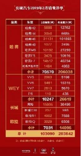 众所周知,汽车市场里能够及时更新换代的车型最受欢迎,哈弗M6自去年年中上市后今年三月就进行了升级更新。实际上这款定位为超值家用的SUV曾在还未上市只有官方图的时候就已经成为了网红车。从上市到现今哈弗M6销量一直处于喜人的状态,也反映出消费者对于它的认可。刚刚,长城汽车正式公布了2019年3月整体销量情况为103090量,同比增长16.82%。具体销量详情如下图所示: