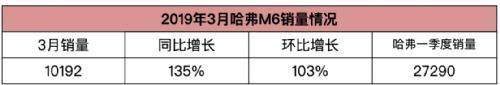 哈弗M6作为哈弗SUV市场布局中重要一环,在车市下行的整体环境下,依旧保持高速增长。来自中汽协的数据显示,3月哈弗M6终端销量再度破万,月销达10192辆,同比激增135%,环比增长103%,至此,哈弗M6第一季度以终端销售27290辆,同比增长158%的优异成绩领跑细分市场。