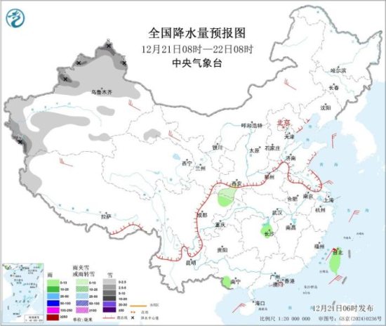 图2 全国降水量预报图(12月21日08时-22日08时)图片来源:中央气象台网站