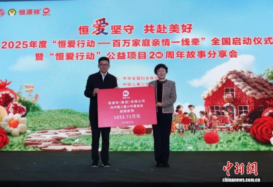据悉,2025年,恒源祥集团再次向中国儿基会捐赠款物1033万余元。中新网北京12月22日电 (记者 余湛奕)